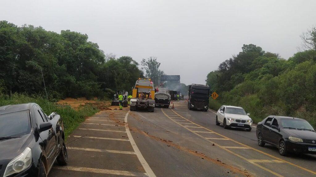 Segundo a PRF, o trecho chegou a ficar em meia pista, mas foi totalmente liberado no início da tarde desta quinta (16).