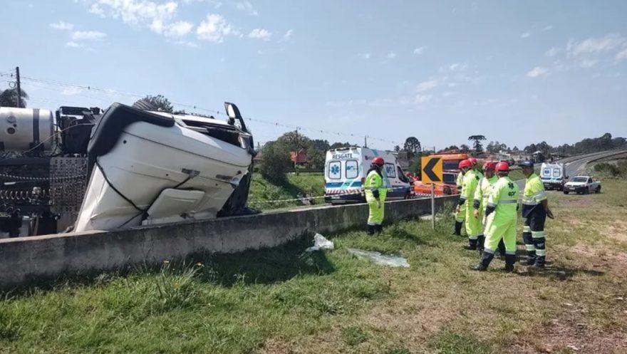 O óbito foi do condutor do caminhão, que tombou em uma curva. Como a carga se espalhou pela pista, a rodovia ficou interditada no sentido crescente, de Castro a Carambeí.