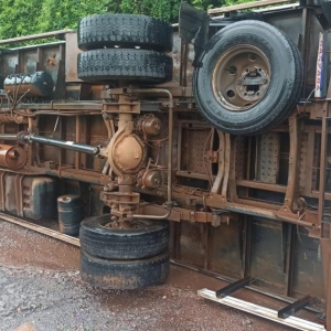 Apesar do impacto, ninguém ficou ferido. A carga transportada foi transferida para outro veículo e o trânsito no local precisou ser controlado até que o caminhão fosse removido. Autoridades foram acionadas para prestar apoio e verificar as condições da via.