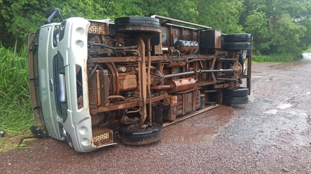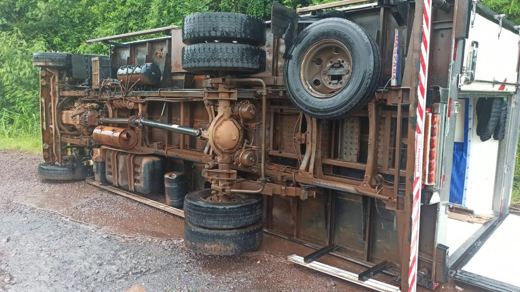 Um acidente envolvendo o tombamento de um caminhão foi registrado no início da tarde desta quinta-feira (19), na rodovia PR-317, no trecho que liga Toledo ao município de Ouro Verde do Oeste. O veículo, um caminhão Ford com câmara fria, com placas do Mercosul e pertencente a uma empresa de Cascavel, transportava uma carga de produtos frios.