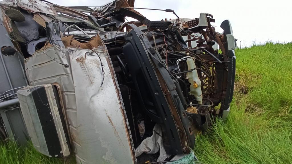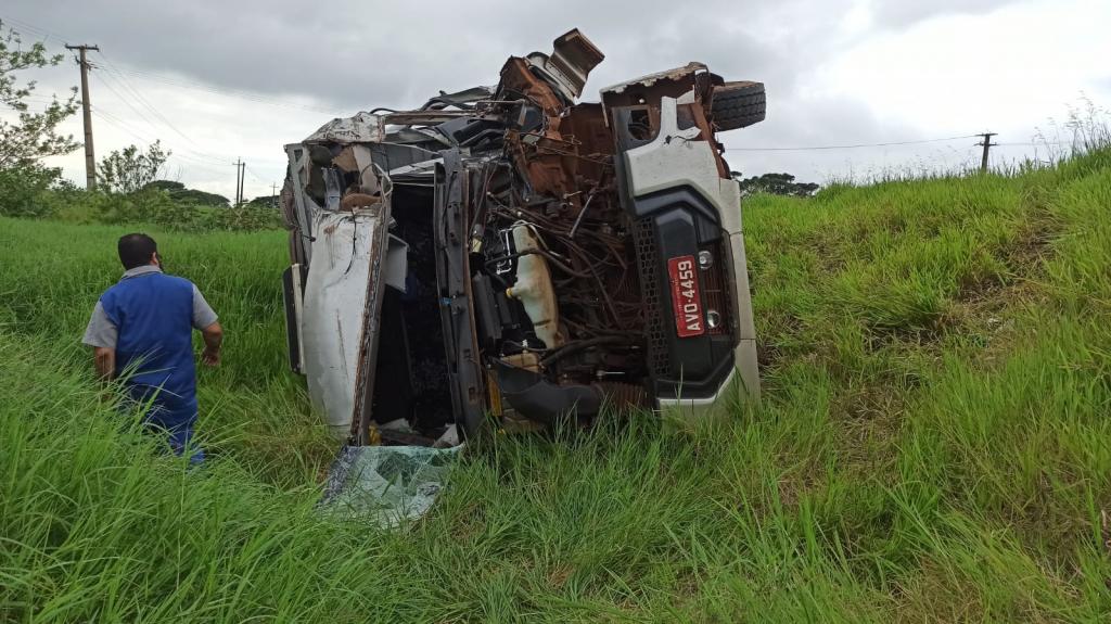 O motorista do caminhão Ford cargo identificado como Ronaldo de 40 anos trafegava pela rodovia no sentido a Toledo e em sua frente seguia uma carreta e quando o motorista da carreta diminuiu a velocidade próximo ao viaduto em Toledo, o motorista do caminhão cargo não conseguiu frear a tempo e atingiu a traseira da carreta e em seguida perdeu o controle do caminhão e capotou descendo um barranco de aproximadamente seis metros.