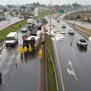De acordo com as informações, o veículo seguia sentido Curitiba a Foz do Iguaçu quando perdeu o controle da direção e acabou tombando na pista.