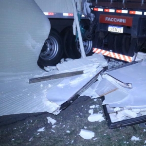 Conforme informações, o veículo baú estaria seguindo de Londrina (Norte paranaense) para Ponta Grossa, quando acabou colidindo na parte traseira do caminhão contêiner, o qual estaria estacionado, sem sinalização.