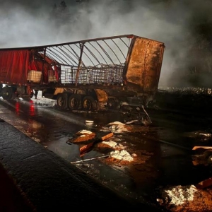 Uma colisão traseira envolvendo dois caminhões provocou um incêndio em ambos os veículos, no final da noite da segunda-feira (09), no km 57 da BR-277 em São José dos Pinhais, na Região Metropolitana de Curitiba. Um dos condutores foi socorrido pelas equipes de emergência e encaminhado para o Hospital Evangélico, na capital paranaense.