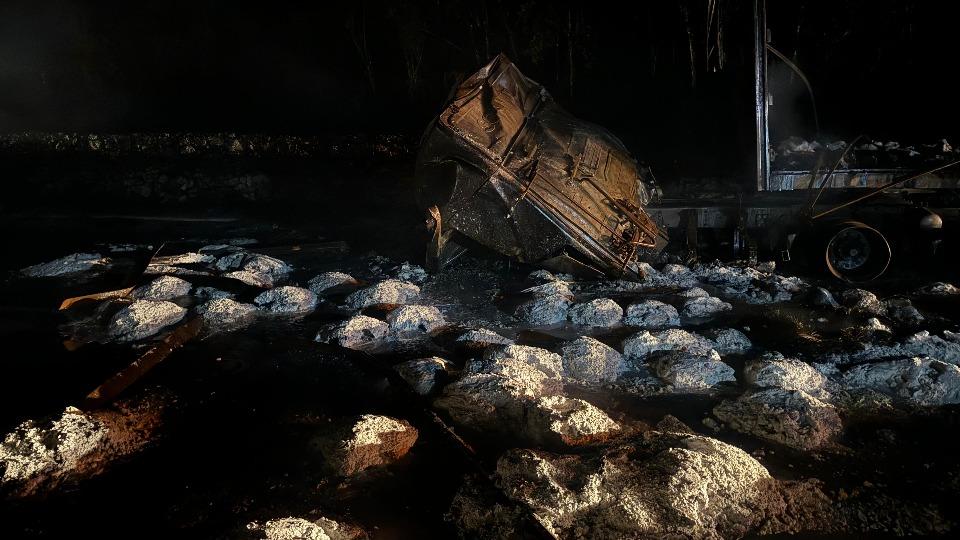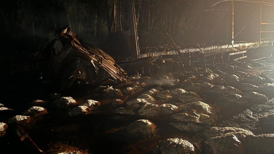 Devido a gravidade do acidente, a rodovia foi totalmente interditada no sentido litoral e Curitiba para a contenção das chamas. Devido à combustão, não foi possível identificar a carga transportada pelos caminhões.