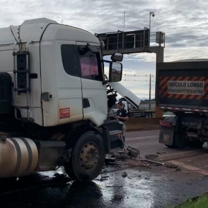 Dois veículos de carga se envolveram em acidente de trânsito na BR 277 em Cascavel, na manhã de segunda-feira (4). A situação aconteceu no quilômetro 583 nas proximidades do Trevo Cataratas.