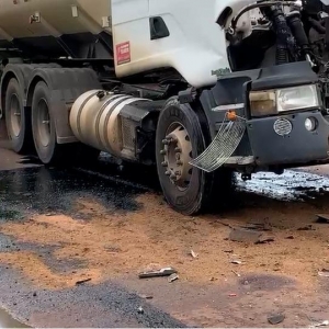 No local, houve vazamento de óleo diesel e a equipe do DER (Departamento de Estradas de Rodagens) jogou cerragem para absorção.