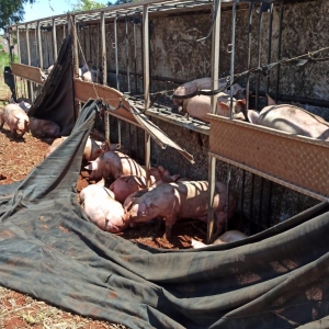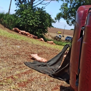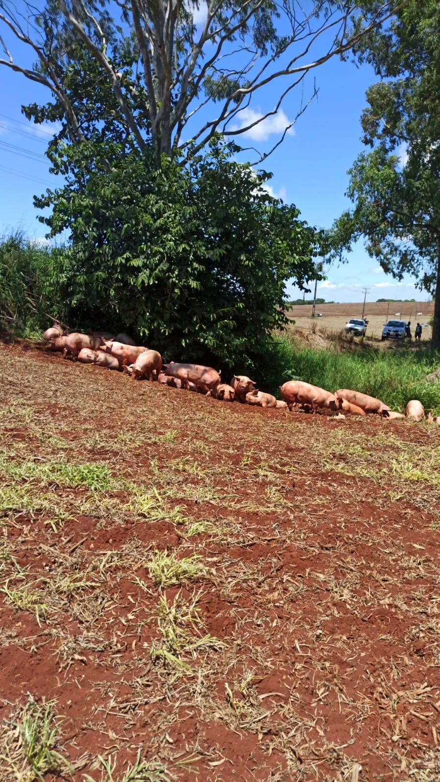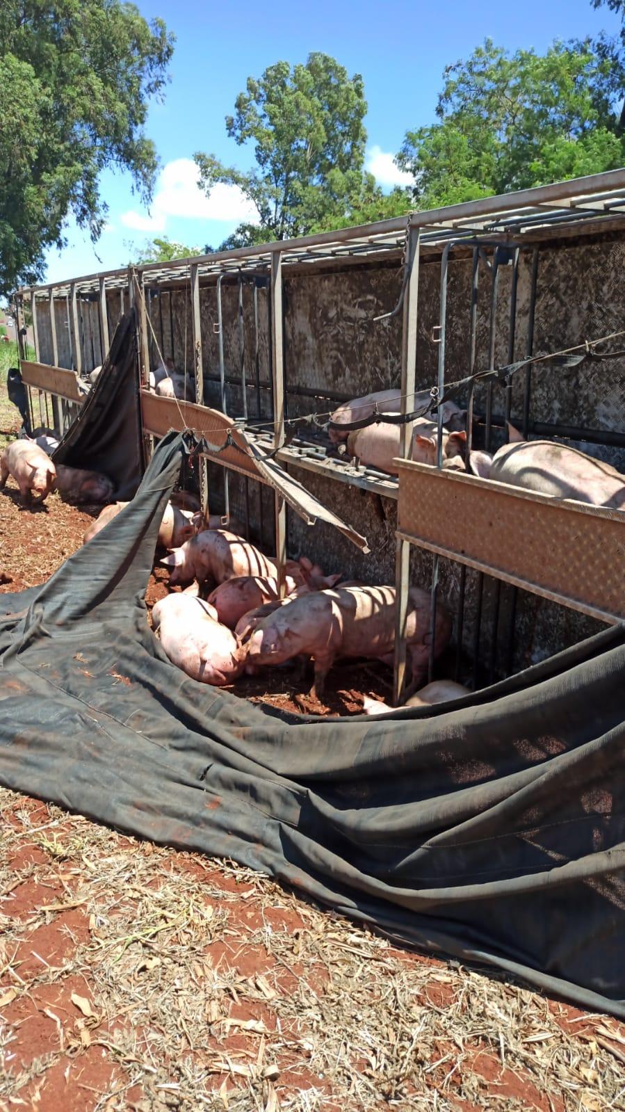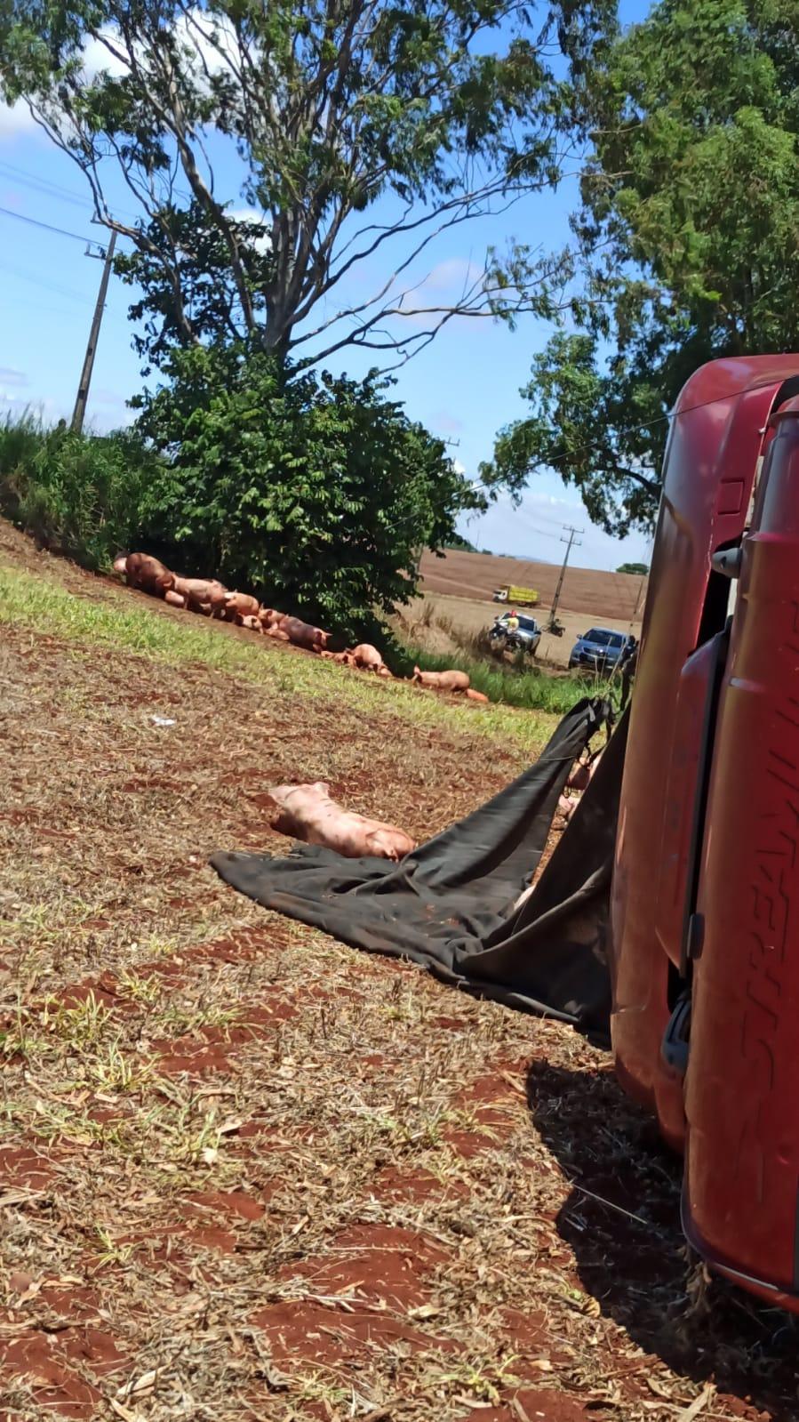 Após a colisão, os porcos caíram na rodovia, alguns morreram e outros perambulavam às margens da via.