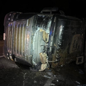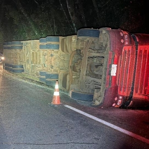 Um homem ficou ferido após tombar o caminhão que dirigia na BR 277, em Virmond, região Centro-Sul do Paraná, na noite da última terça-feira (16). O acidente deixou a carga de soja espalhada pela pista e causou alguns bloqueios na rodovia.