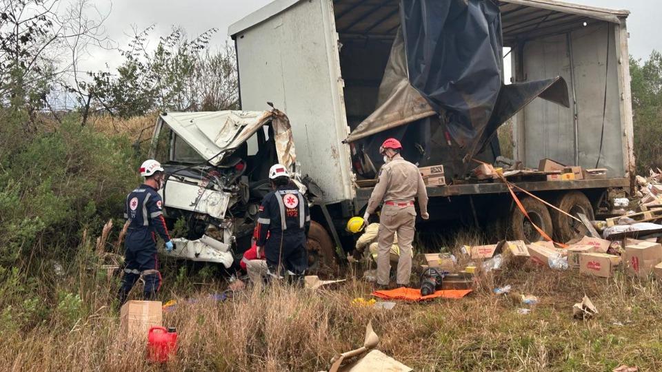 Equipes do Corpo de Bombeiros, SAMU e Polícia Rodoviária Estadual foram mobilizadas para o resgate. O trabalho de remoção da vítima exigiu atenção redobrada devido à complexidade do cenário e à posição em que o motorista ficou preso.