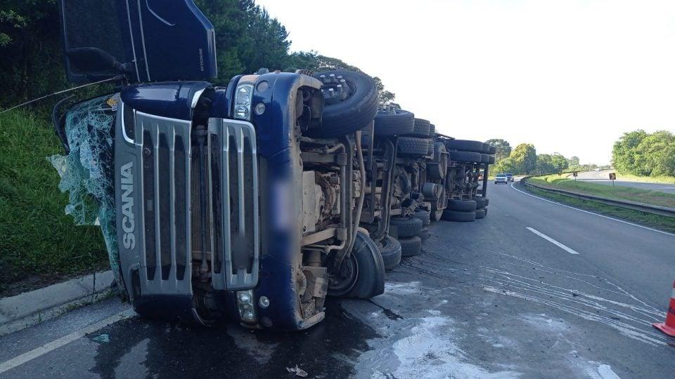 Um caminhoneiro morreu após tombar a carreta que dirigia na BR-116, nesta segunda-feira (18), em Campina Grande do Sul, na Região Metropolitana de Curitiba. O acidente aconteceu, por volta das 7h da manhã, no km 57,4 na pista sentido São Paulo.