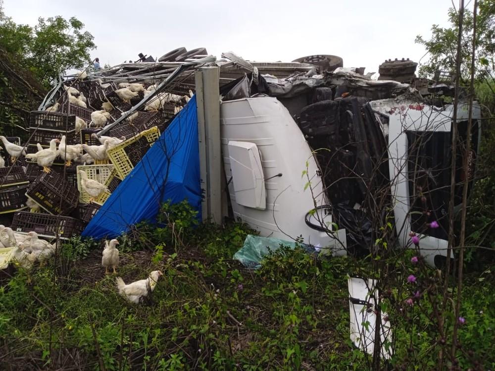 A identidade do homem não foi revelada. O caminhão que ele dirigia estava carregado com frangos.