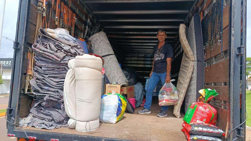 O caminhoneiro Marcelo da Rosa, conhecido como Solitário, está realizando uma campanha de arrecadação de donativos para as vítimas do ciclone que atingiu a cidade de Rio Bonito do Iguaçu. A carreta de Marcelo está estacionada na Avenida Parigot de Souza, próximo ao Teatro Municipal de Toledo, e a comunidade tem colaborado intensamente com doações de colchões, medicamentos, água, leite, alimentos e materiais de higiene pessoal.