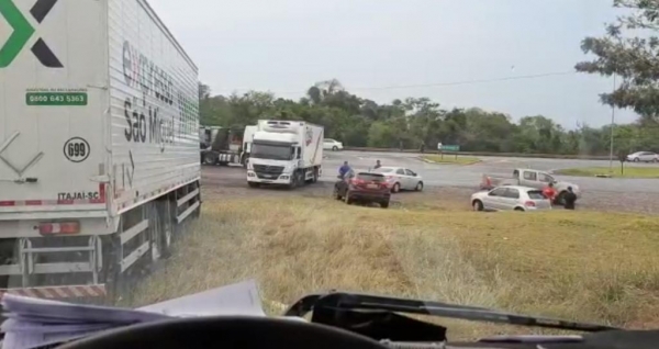 Uma manifestação está impedindo a passagem de caminhões ao município de Céu Azul na manhã desta quarta-feira (08).