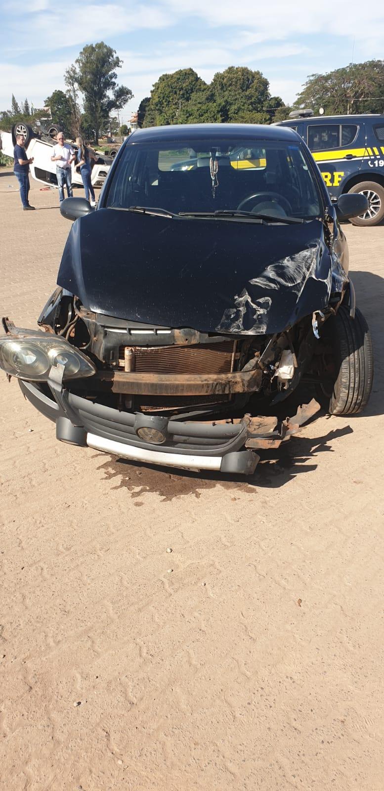 Segundo a PRF, a VW Amarok colidiu de forma transversal com um VW Fox, vindo a capotar.