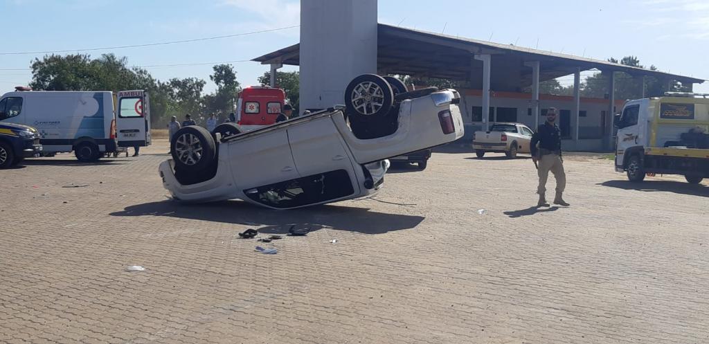 Caminhonete capota após batida na BR-272 entre Guaíra e Terra Roxa
