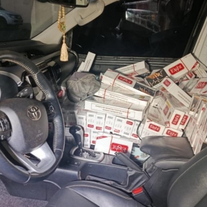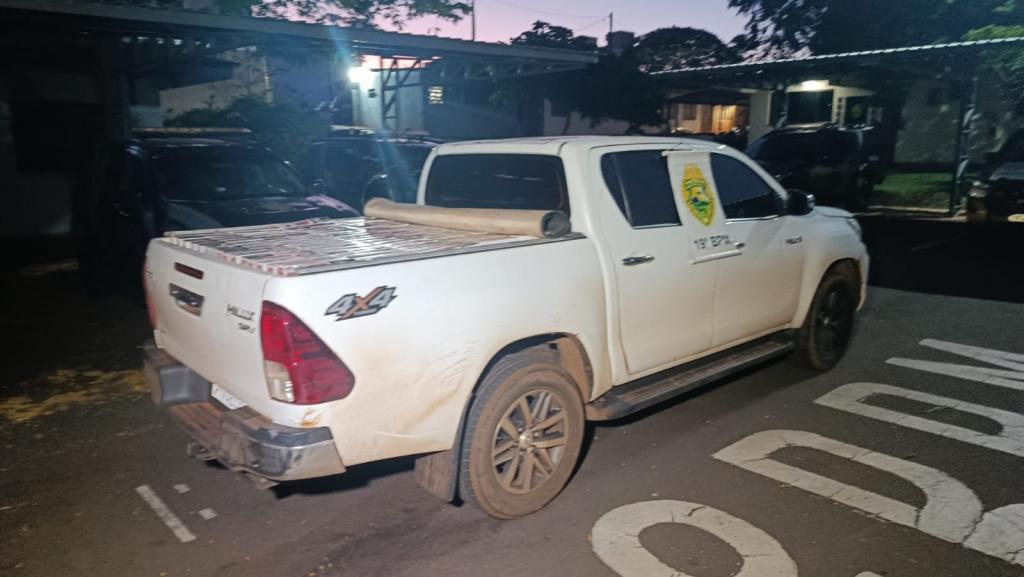 Na verificação do veículo, os policiais constataram que a Hilux estava carregada com grande quantidade de cigarros de origem paraguaia. A caminhonete também apresentava placas que não correspondiam ao chassi, sendo identificada como produto de furto ocorrido em junho deste ano na cidade de Jandaia do Sul, no Norte do Paraná.