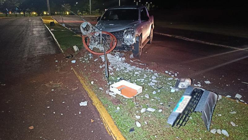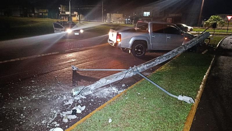 De acordo com informações obtidas no local, a caminhonete seguia pela Avenida Maripá quando o motorista realizou conversão à direita para acessar a Avenida Egon Pudel, nas proximidades do Largo dos Pioneiros. Nesse momento, o condutor perdeu o controle da direção e atingiu um poste de iluminação pública localizado no canteiro central, derrubando a estrutura.