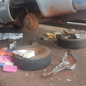 Em verificação, os agentes encontraram as drogas, que estavam em fundos falsos na região da lataria, perto das rodas traseiras da caminhonete.