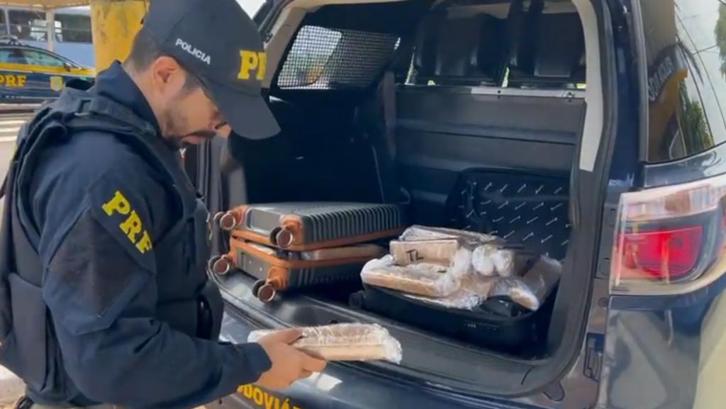 Durante a abordagem ao ônibus da linha Foz do Iguaçu x Santa Terezinha, os agentes identificaram que a passageira carregava bagagens com peso incompatível com a justificativa de conter apenas roupas. Diante da suspeita, a equipe solicitou a abertura das malas e constatou a presença de diversos tabletes de maconha, exalando forte odor característico da droga.