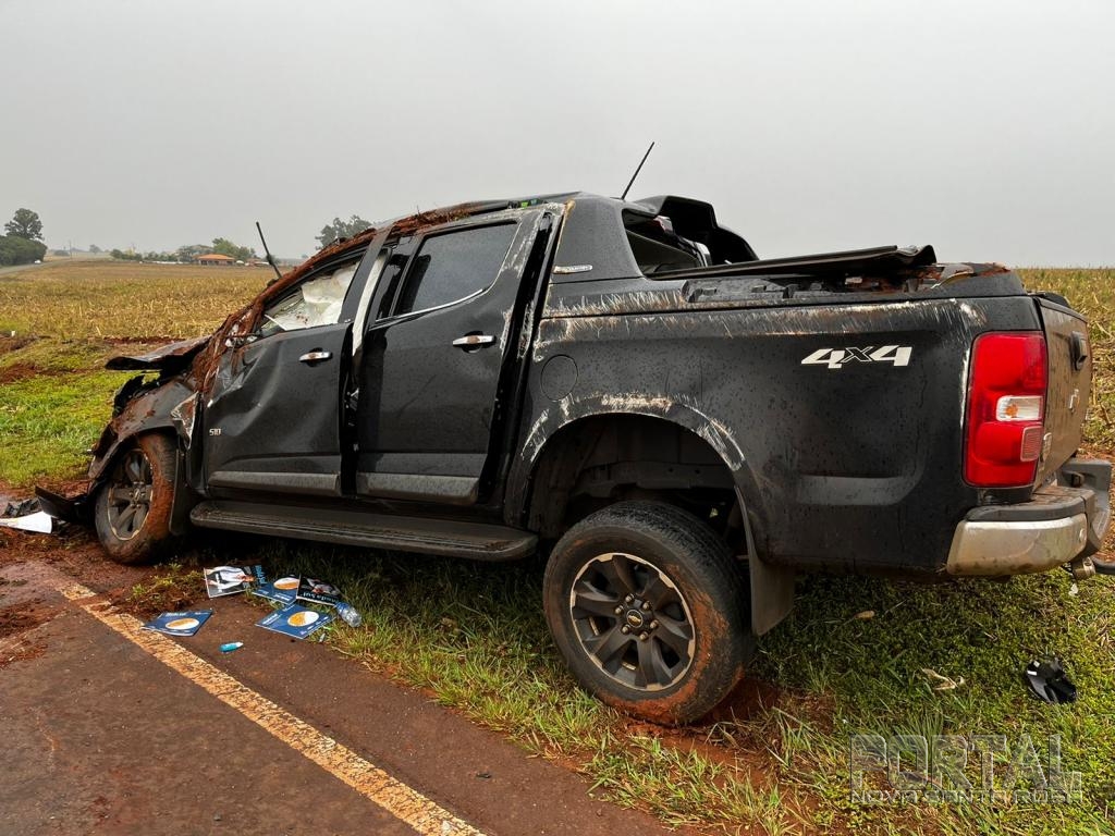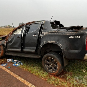 Uma caminhonete S-10 de Marechal Rondon capotou na rodovia que liga Palotina a Terra Roxa, nas proximidades do distrito de São José em Terra Roxa, na tarde de hoje.