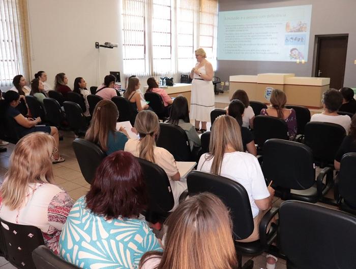 Foi realizado em Palotina um curso que abordou o tema "As possiblidades de inclusão educacional", ontem (17). A capacitação, ministrada pela doutora Fernanda Polonio, de Maringá, foi destinada para os profissionais da Secretaria Municipal de Educação e Cultura, coordenadores do Ensino Fundamental e da Educação Infantil, Centro Integra TEA, e Centro de Atendimento Multiprofissional (CEAM).