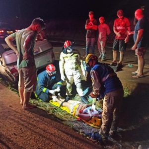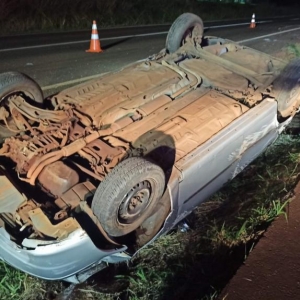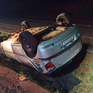 O veículo Fiat Palio com placas Mercosul seguia no sentido a rodovia com quatro ocupantes sendo o motorista duas mulheres e uma criança, o motorista teria perdido o controle e capotou o veículo parando com as rodas para cima dentro da valeta que divide as duas pistas.