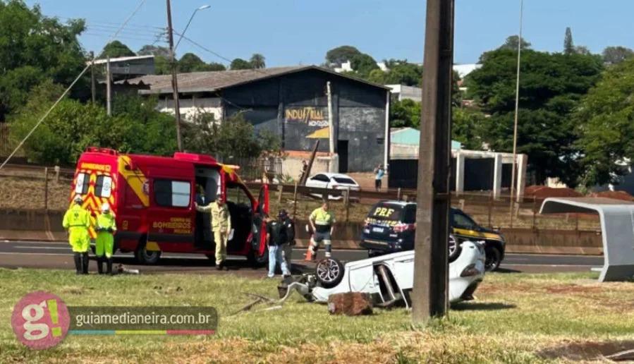 Um capotamento foi registrado nesta terça-feira (31), no perímetro urbano de Medianeira, na BR-277, altura do km 674. O acidente envolveu um automóvel Renault Sandero, de cor branca.