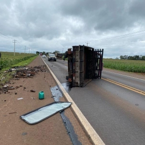 A carga de peças ficou espalhada às margens da rodovia. A PRF esteve no local controlando o trânsito, que ficou em meia pista até a remoção da caminhonete