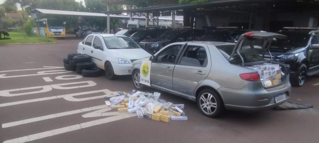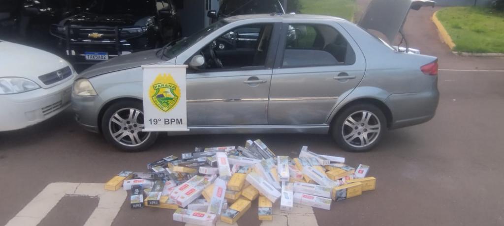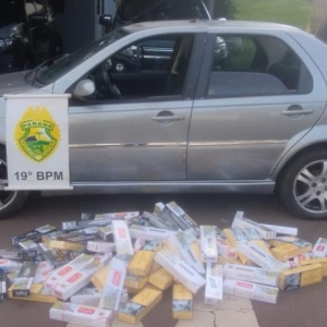 Durante a vistoria no automóvel, os policiais encontraram uma carga de cigarros de origem paraguaia, caracterizando contrabando.