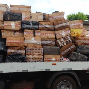 Os policiais militares receberam a informação que o veículo estava parado, as margens de uma lavoura de milho e caixas de cigarros contrabandeados do Paraguai estavam sendo carregados no baú da carreta juntamente com a carga de frangos.