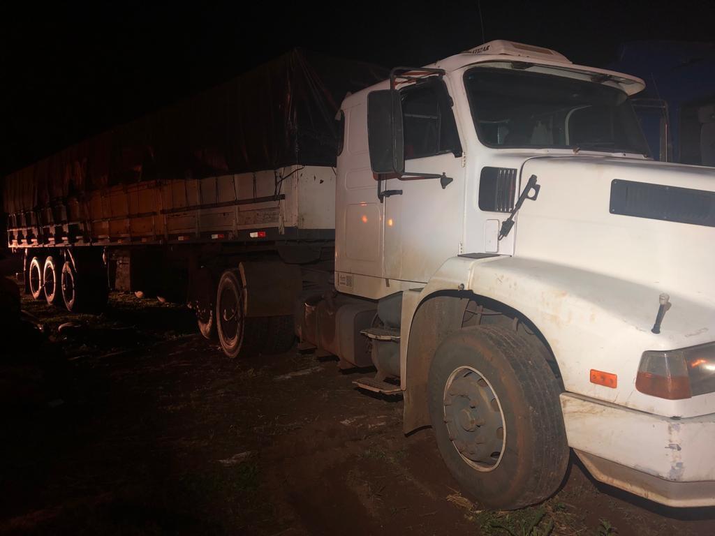 A carreta carregada com cigarros contrabandeados do Paraguai foi apreendida na madrugada de sábado (20) na área rural de Guaíra.