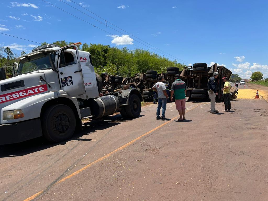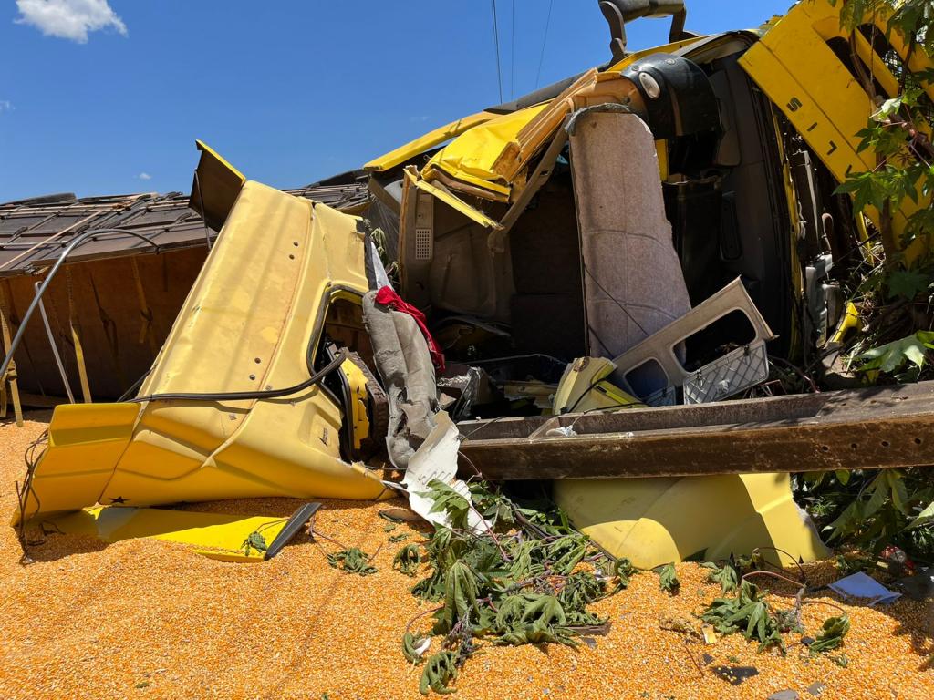 Um grave acidente de trânsito aconteceu na manhã desta terça-feira (08) na rodovia BR-163, próximo ao posto Trovão Azul, em Marechal Cândido Rondon, envolvendo uma carreta carregada com milho e um carro de passeio.