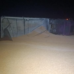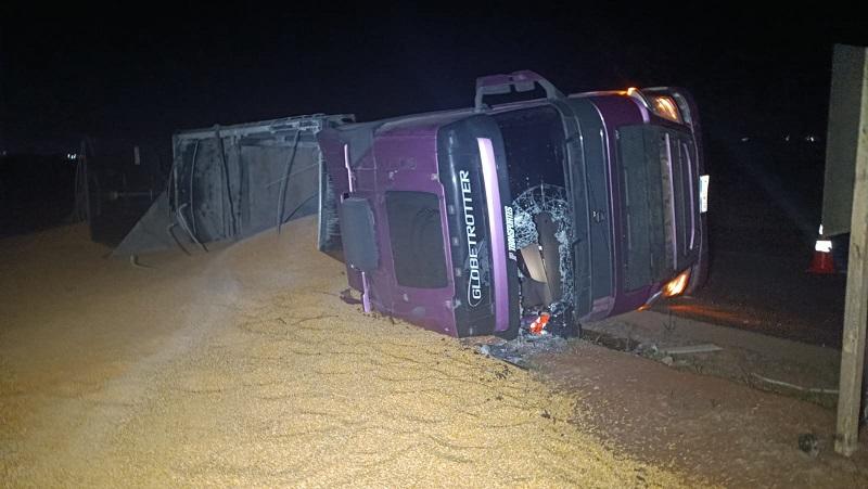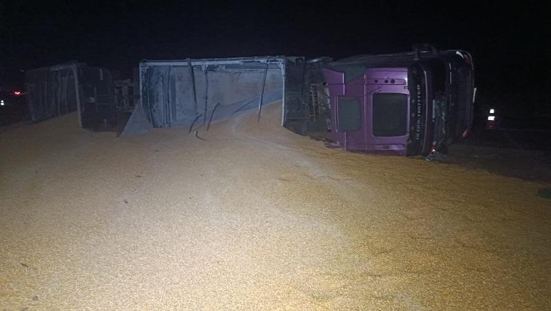 O acidente chamou a atenção de quem passava pelo trecho, já que o volume de grãos se espalhou por uma grande área próxima à rodovia.