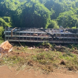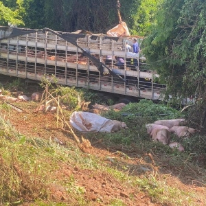 Conforme informações, a carreta carregou 190 suínos no interior de Santa Helena e seguia para Iporã/PR. Por volta das 5h, ao chegar na “Serrinha”, a carreta acabou saindo da pista e capotou em uma ribanceira.