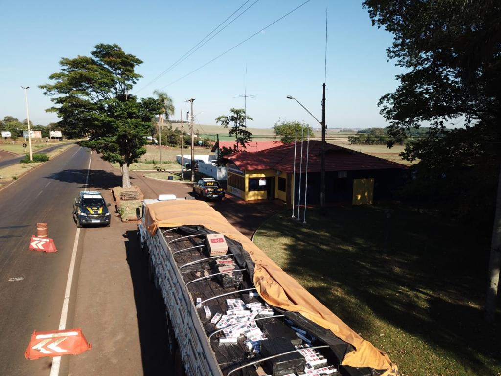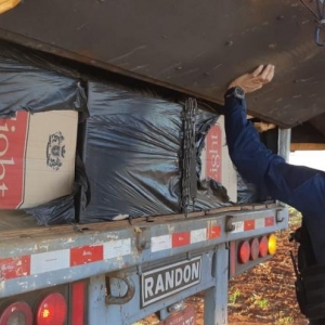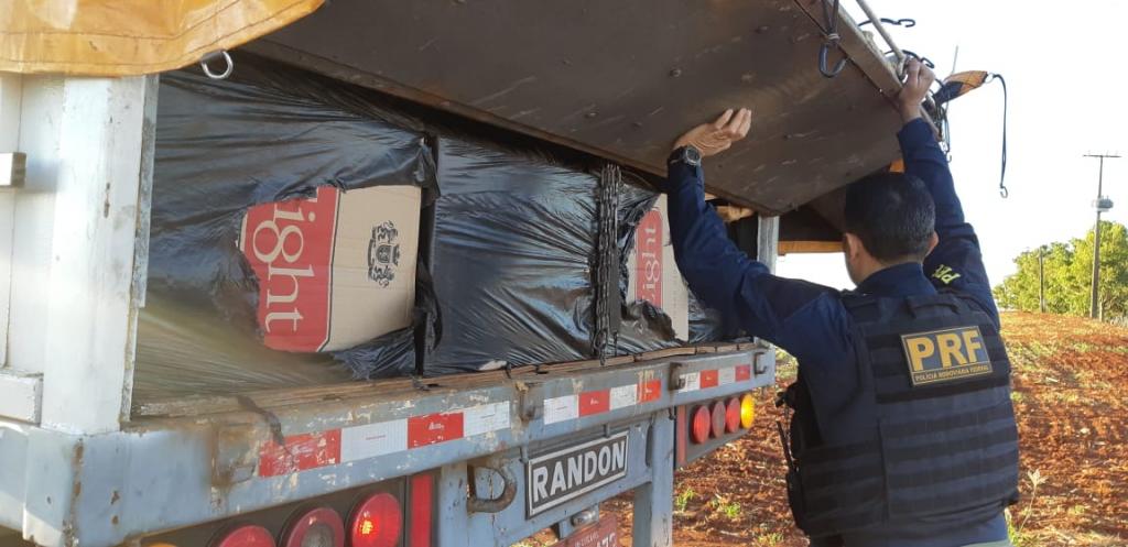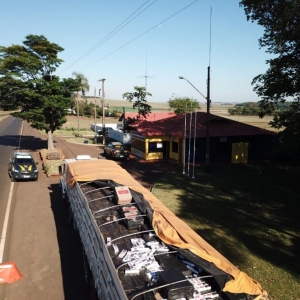 Ao fiscalizar o caminhão foram encontradas aproximadamente 600 caixas de cigarros, totalizando 300.000 (trezentos mil maços) da marca Eight, oriundos do Paraguai.