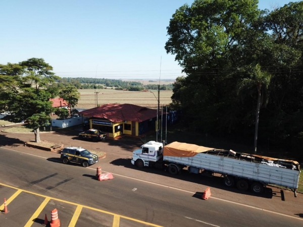 Na manhã desta quinta-feira, na BR 163 KM 276, em Quatro Pontes, por volta das 06h20 foi dado ordem de parada para uma Scania/T112H, cor branca.