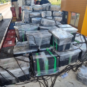 Ao retirar as caixas vazias foi descoberto uma grande carga de maconha e Skunk.