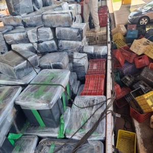 Foi então realizado uma busca minuciosa no veículo que estava carregado com caixas vazias, sendo que ao vistoriarmos a carga, foi possível constatar que estava sendo transportado algum ilícito.