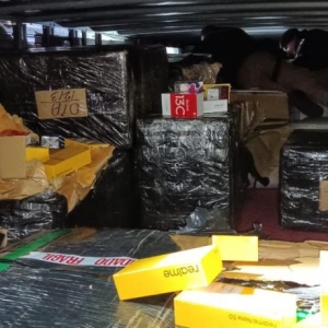 Foi solicitado apoio da equipe ROTAM para que fosse realizada a abordagem. Durante a verificação da carga do caminhão foram encontrados em cima da carga de óleo vegetal, 100 volumes grandes com aproximadamente 150 celulares em cada volume, perfazendo assim um total de 15.000 mil celulares.