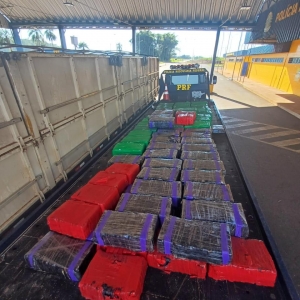 No início da manhã desta segunda-feira (22), durante Operação Conatus, a Polícia Rodoviária Federal (PRF) apreendeu na BR-163, em Mercedes, 2,55 toneladas de maconha em uma carreta com placas de Pedra Preta/MT.