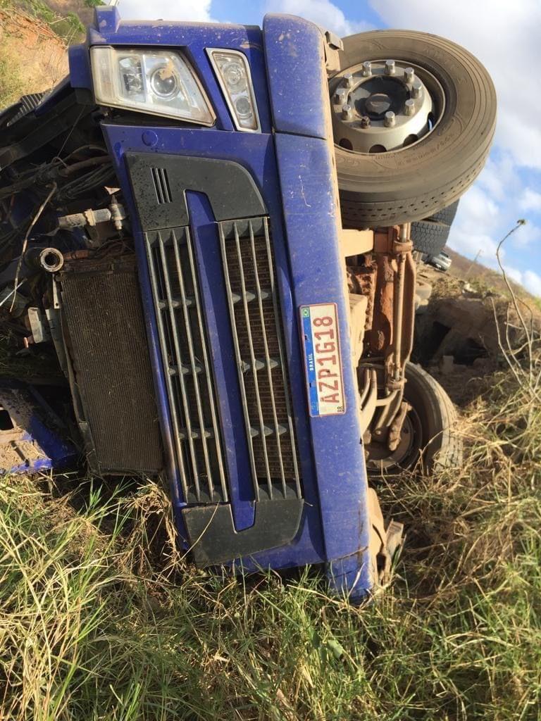 Segundo informações preliminares, o caminhoneiro identificado como Luiz Nivaldo, perdeu o controle da direção e tombou na curva.