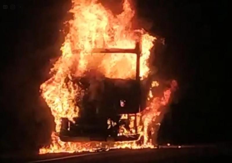 O sinistro aconteceu na noite da última segunda-feira (18). A Volvo FH seguia sentido à Cascavel quando as chamas iniciaram.