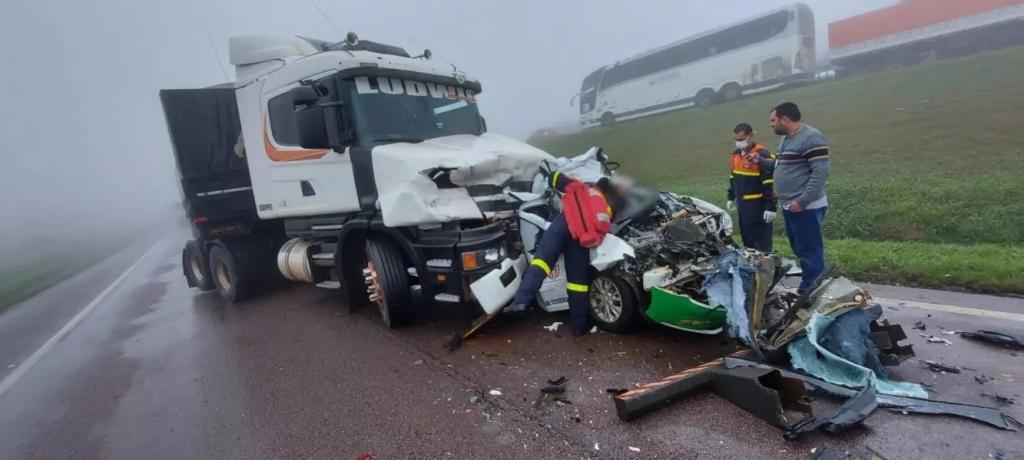 O terceiro acidente foi mais grave e aconteceu no quilômetro 137 da BR-277. Lá, um veículo Gol da Saúde e a carreta bitrem de Mercedes bateram forte durante engavetamento, o que deixou pelo menos uma pessoa morta e feridos.