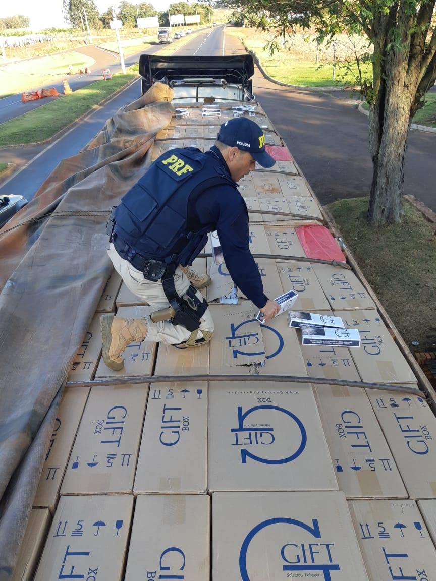 Por volta das 07h30 da manhã de hoje (12), em Quatro Pontes, km 278 da BR 163, a Polícia Rodoviária Federal (PRF) prendeu condutor de carreta carregada de cigarros de origem paragauia.