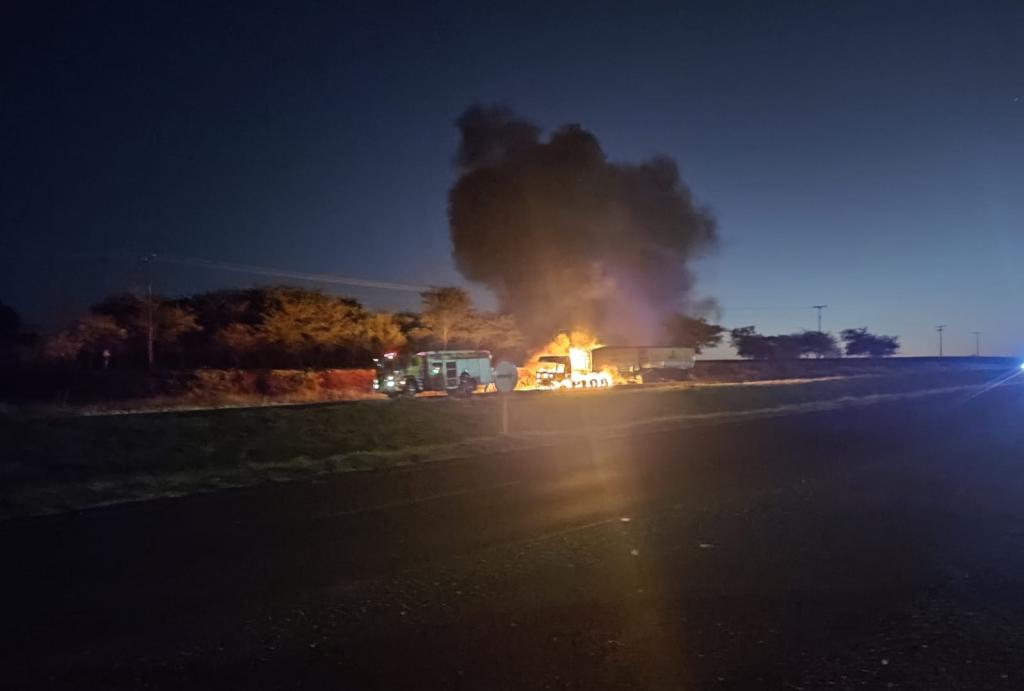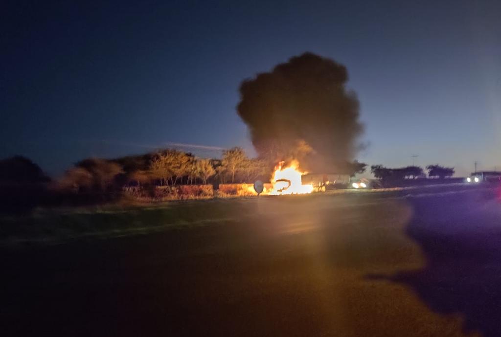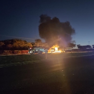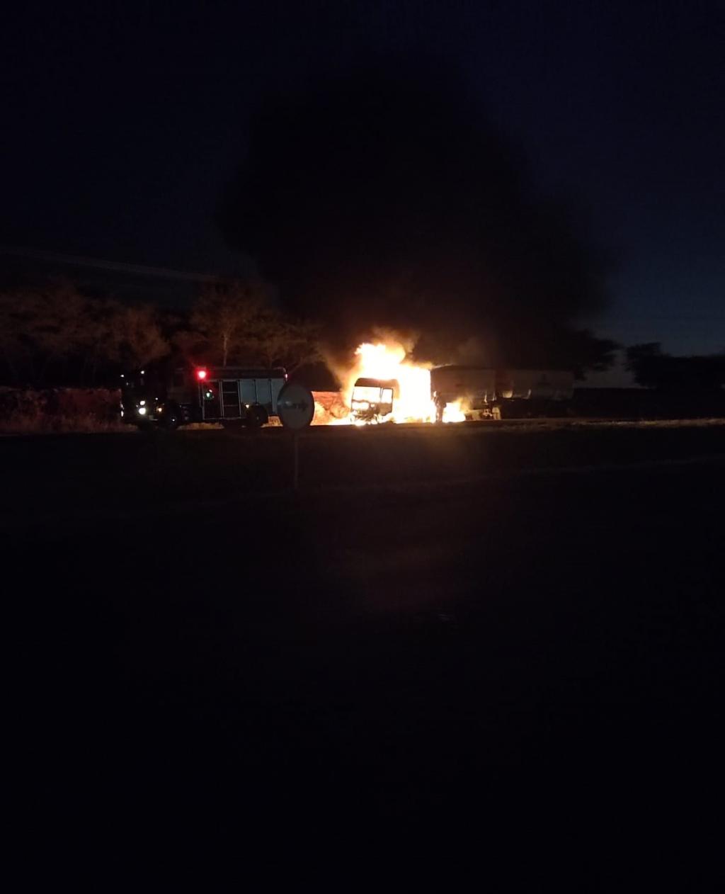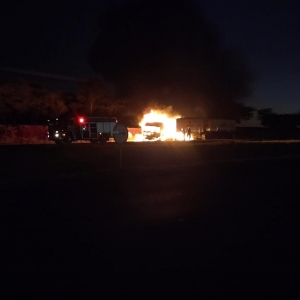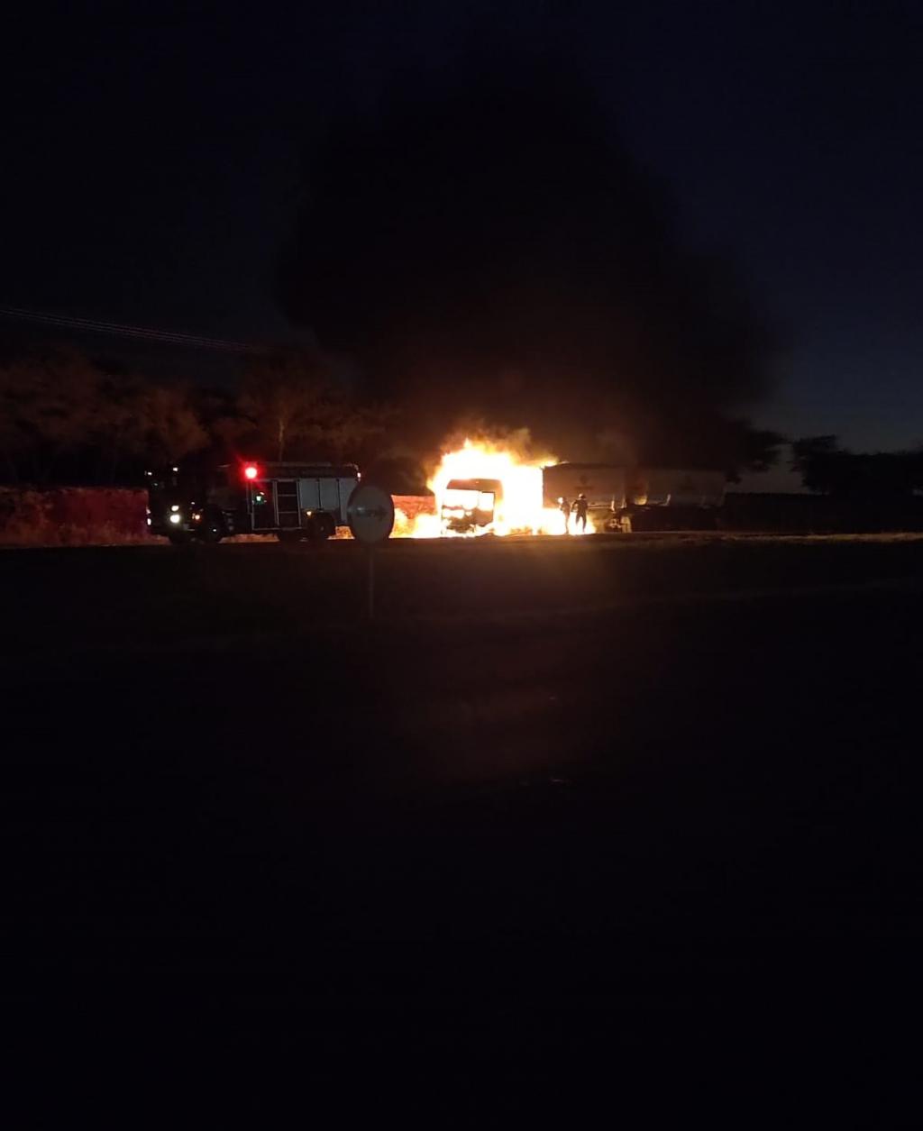 A placa do reboque é de Marechal Cândido Rondon, o motorista disse que o fogo começou na frente do caminhão e rapidamente ele parou, saiu, pois o fogo se alastrou rapidamente.