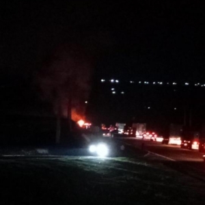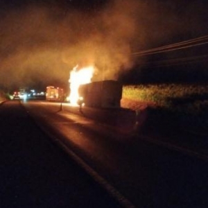 A situação aconteceu na BR-163, trecho entre Marechal e Mercedes, onde uma carreta pegou fogo próximo da Frimesa.