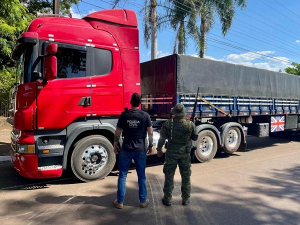 Na terça-feira (30), no âmbito da Operação Protetor, policiais militares do Batalhão de Polícia de Fronteira, em ação integrada com agentes da Polícia Civil de Guaíra, durante patrulhamento localizaram próximo à um porto clandestino, um caminhão Scania e um semi-reboque, que após verificação constatou-se que haviam sido roubados em Caxias do Sul-RS.