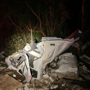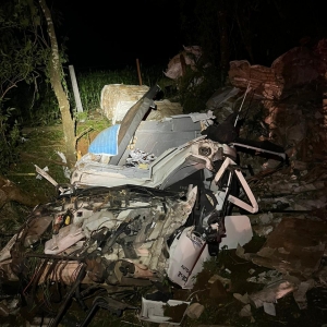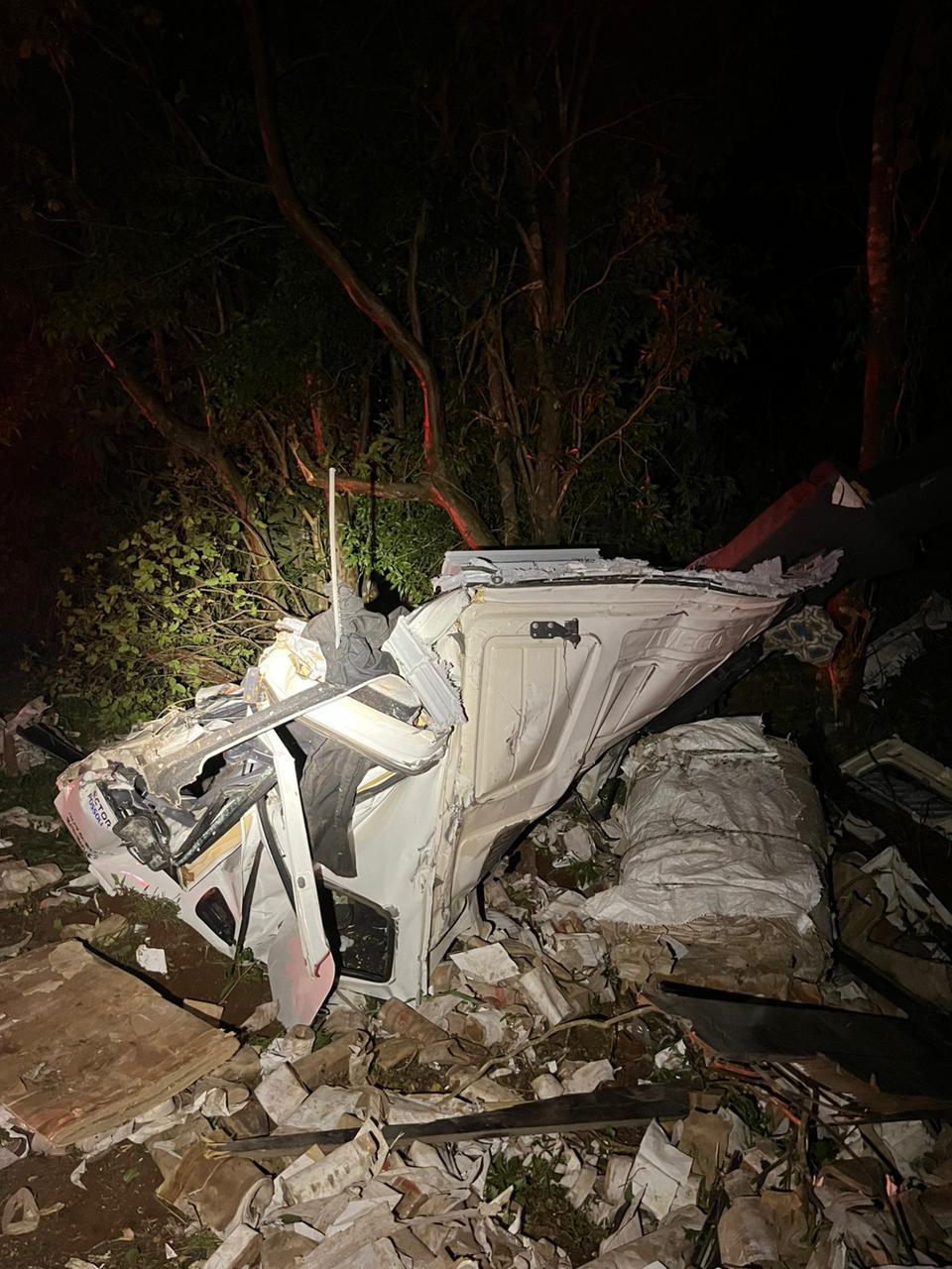 O veículo atingiu uma árvore e ficou destruído.