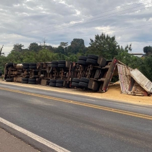 Carreta tomba na BR-163 em Marechal Cândido Rondon